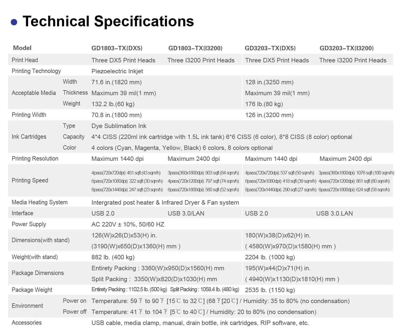 3/4 I3200 Print HeadsPRINTING WIDTH :