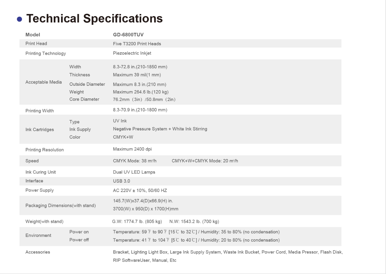 5 TI3200 Print HeadsPRINTING WIDTH :