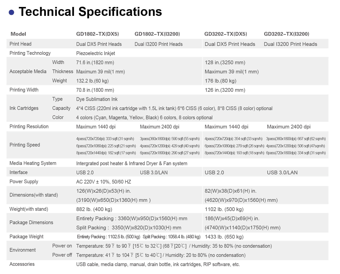 Double DX5/3200 Print HeadsPRINTING WIDTH :