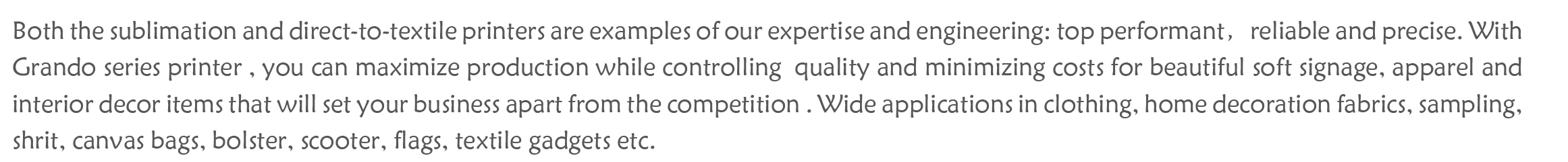 | GRANDO is a professional large format printing machine leader in China, welcome your RFQ so that we can give you a specific introduction to help you find your desired models. |