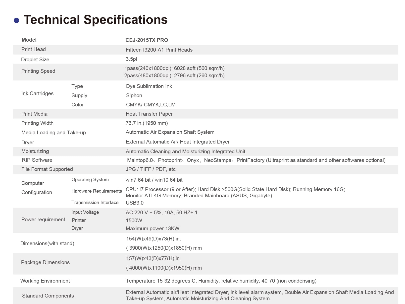 15PCS I3200 Print HeadsPRINTING WIDTH :