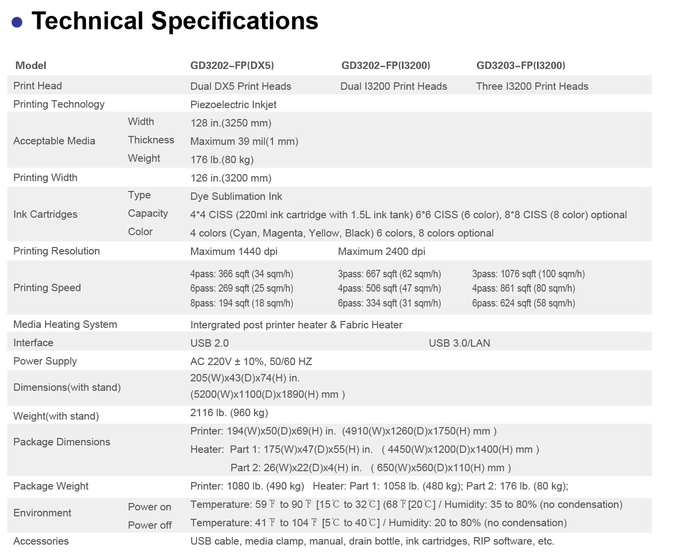 Three I3200 Print HeadsPRINTING WIDTH :