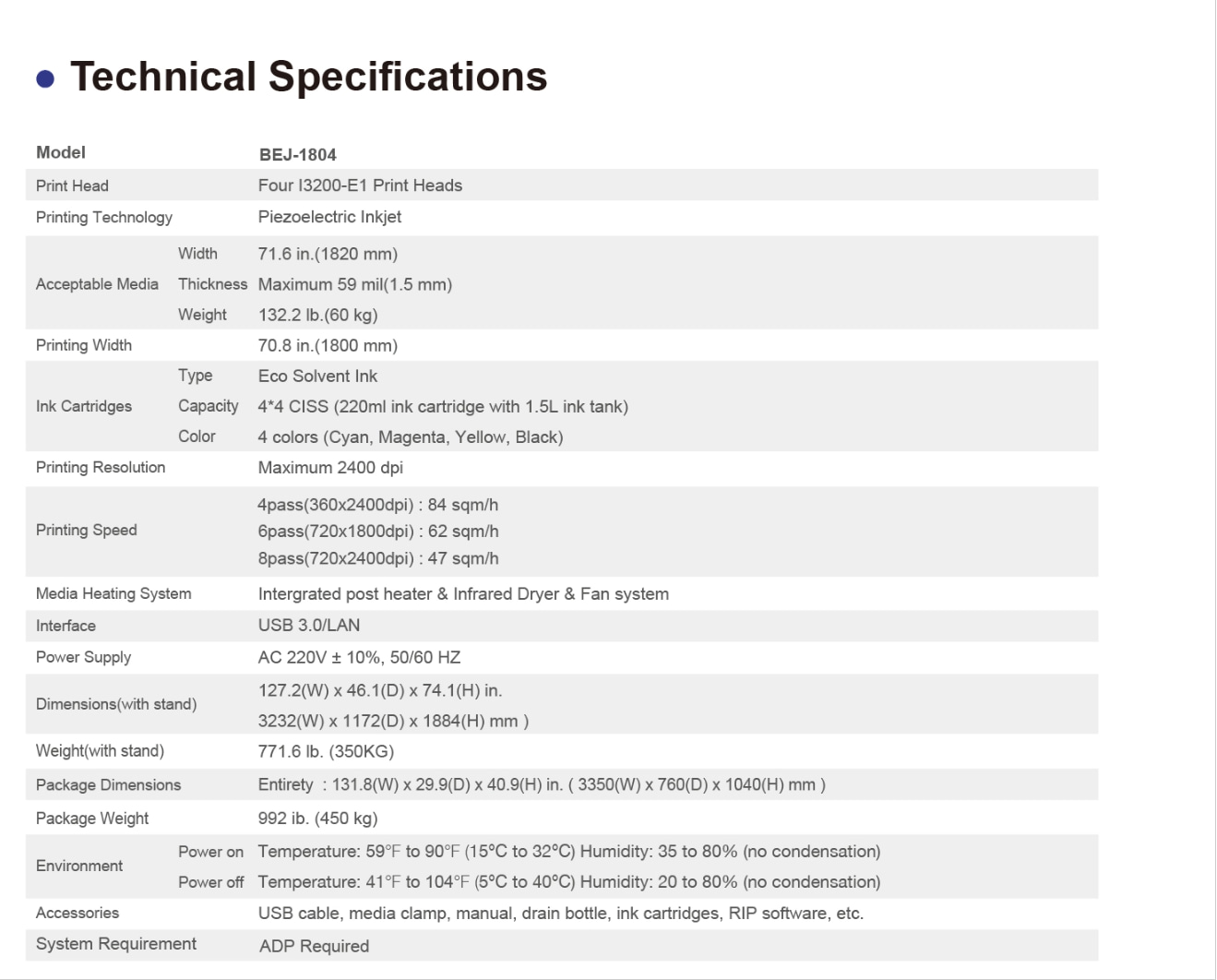 Four I3200-E1 Print HeadsPRINTING WIDTH :