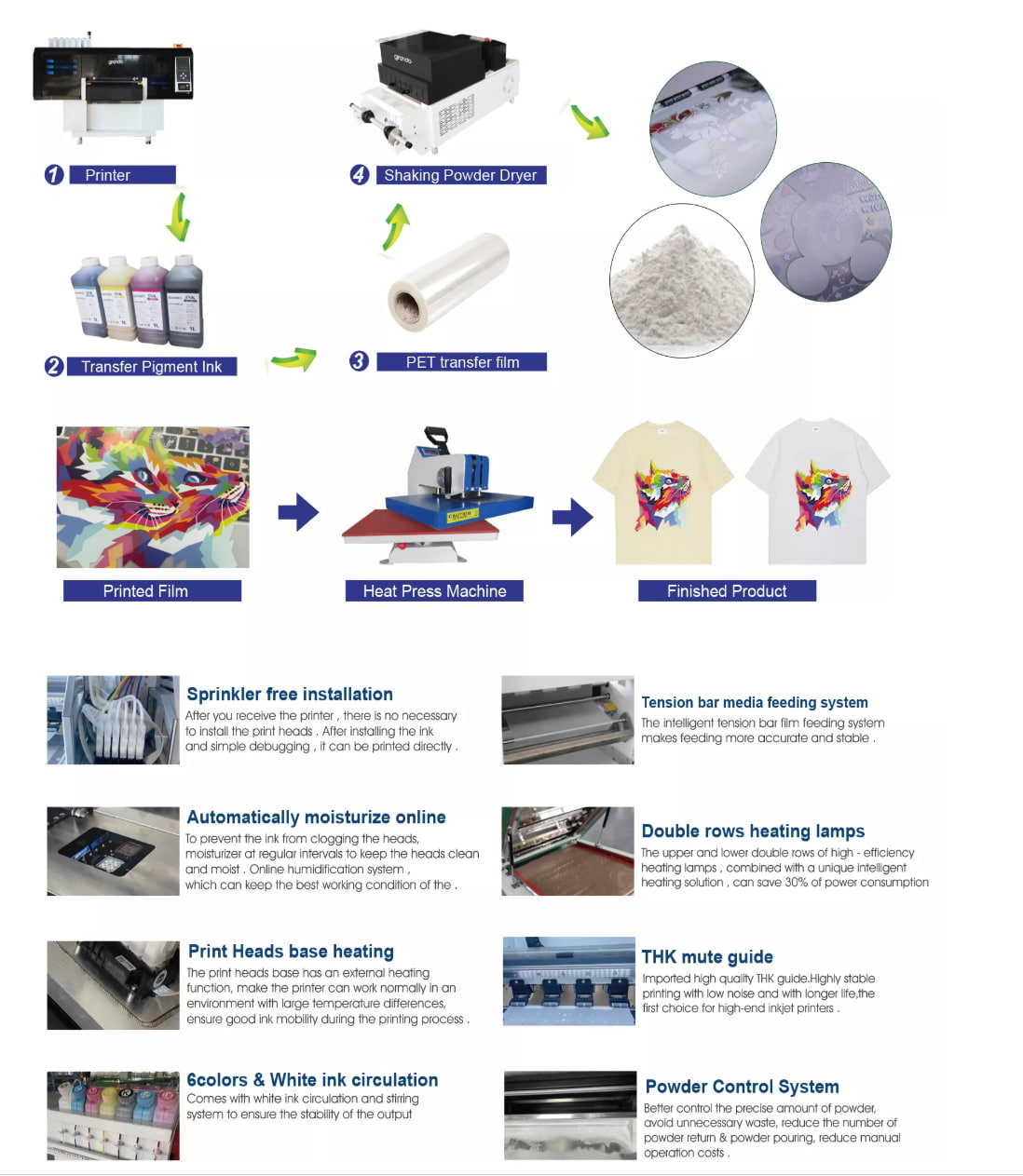 | T-shirt Digital Heat Transfer Systems with Mini Powder Shaker Machine. |