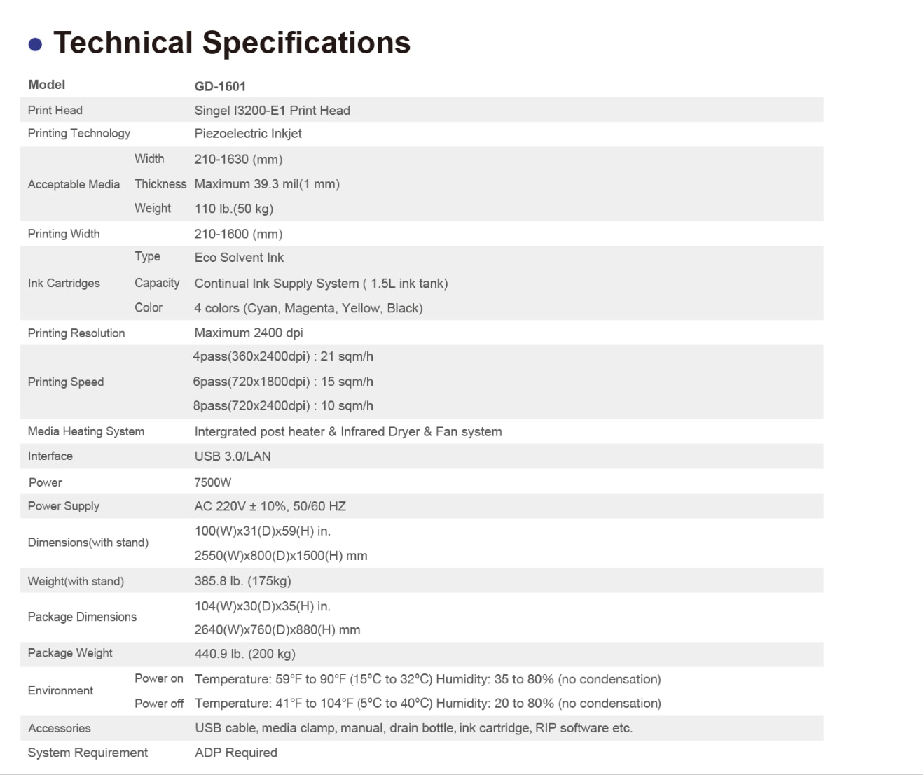 Double I3200-E1 Print HeadsPRINTING WIDTH :