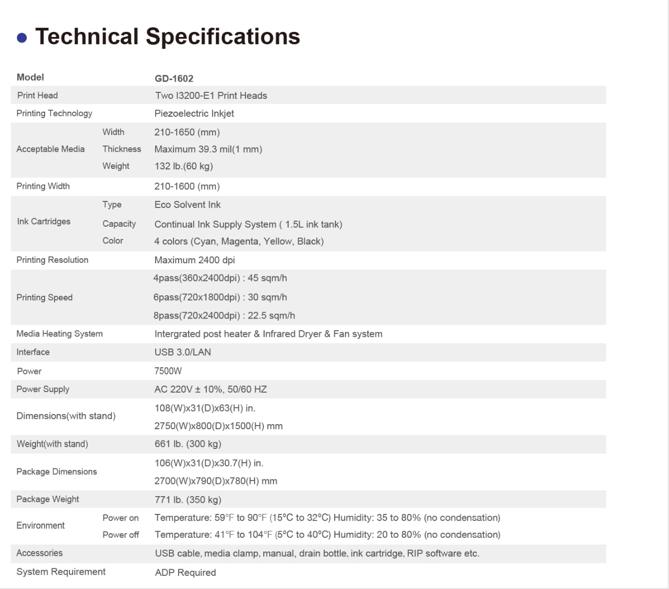 Double I3200-E1 Print HeadsPRINTING WIDTH :